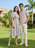 Step into effortless style with this beautifully coordinated heart print outfit designed for modern couples. Featuring a charming red heart and blue geometric pattern, this set brings a playful yet elegant vibe to your look.                                                                                 Perfect for vacations, brunch dates, festive occasions, casual outings, or special photoshoots, this matching outfit ensures you stand out together in style. Comfortable, eye-catching, and thoughtfully designed — a perfect choice for twinning moments.